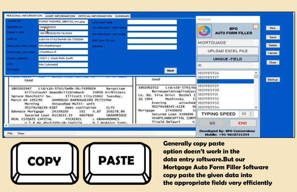 Mortgage Auto Form Fillup Software copy paste the data into data entry software just like manual typing.